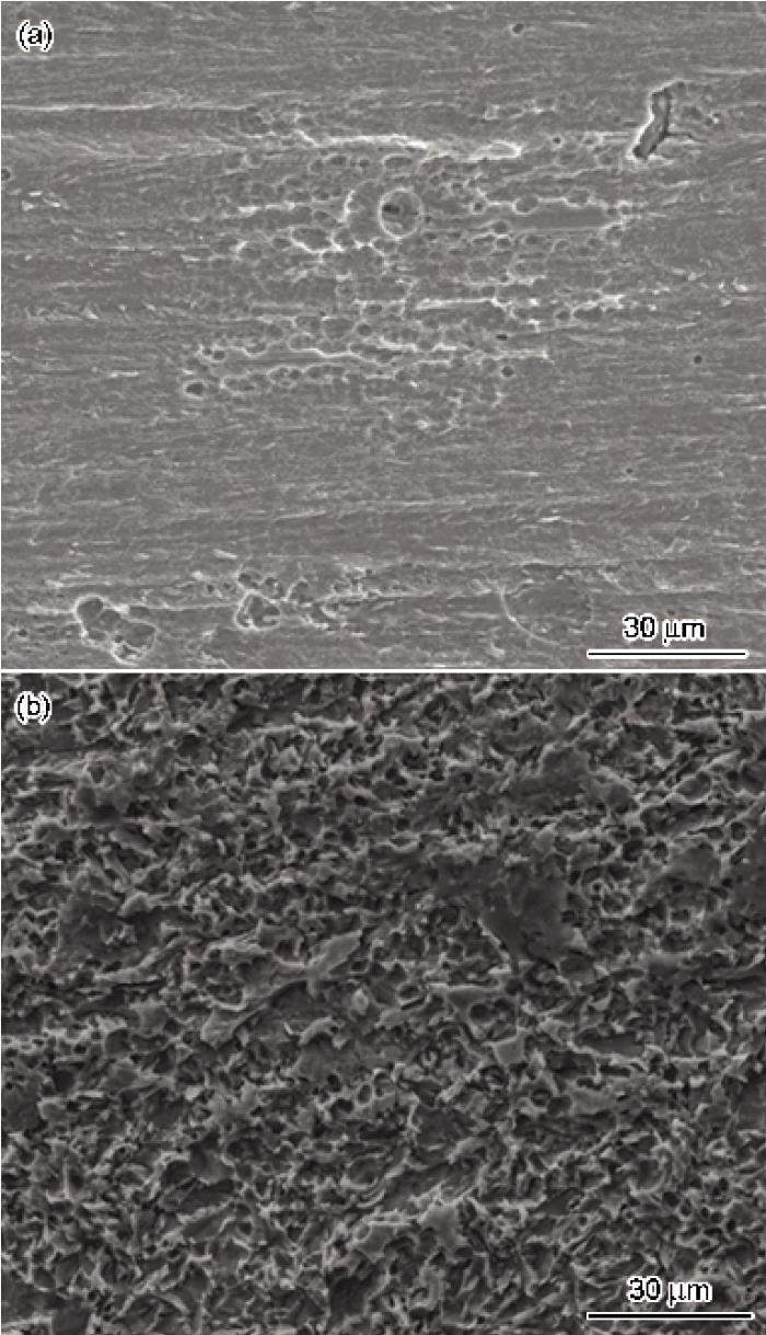 实验结束后,将试样浸入添加缓蚀剂的盐酸清洗液 (500 mL盐酸+500 mL去离子水+20 g六次甲基四胺) 中去除腐蚀产物,并用去离子水清洗吹干,由扫描电子显微镜 (SEM,Philips FEG XL30) 观察微观腐蚀形貌。