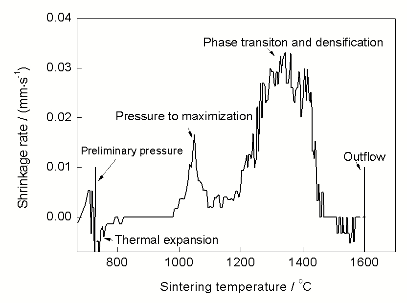 图12 试样随SPS法烧结温度变化的收缩率曲线