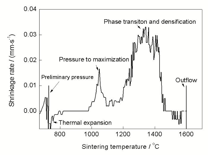 Fig.12 Shrinkage behavior of the sample during the SPS process