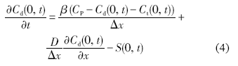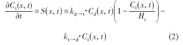 式(1)~(6)可通过有限差分法进行数值求解. 因此, C的扩散关系可以采用Crank-Nicholson 有限差分法转化为以下形式: