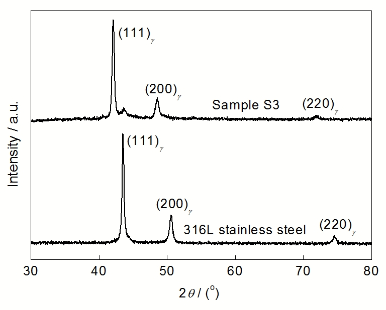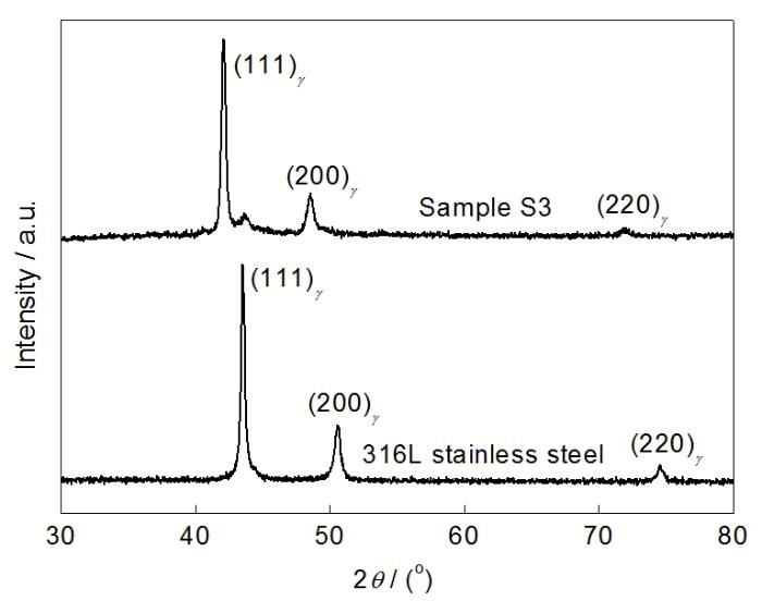 Fig.4   XRD spectra of 316L stainless steel and sample S3 surface