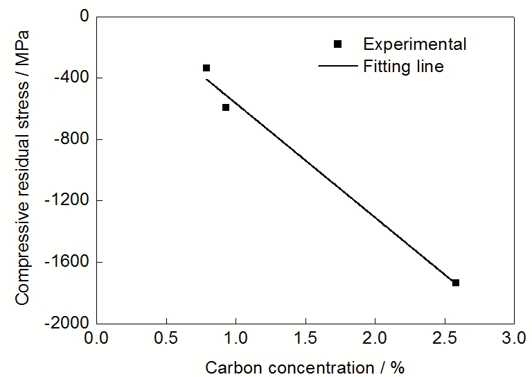 Fig.5   Relationship between compressive residual stress and carbon concentration of carburized layer