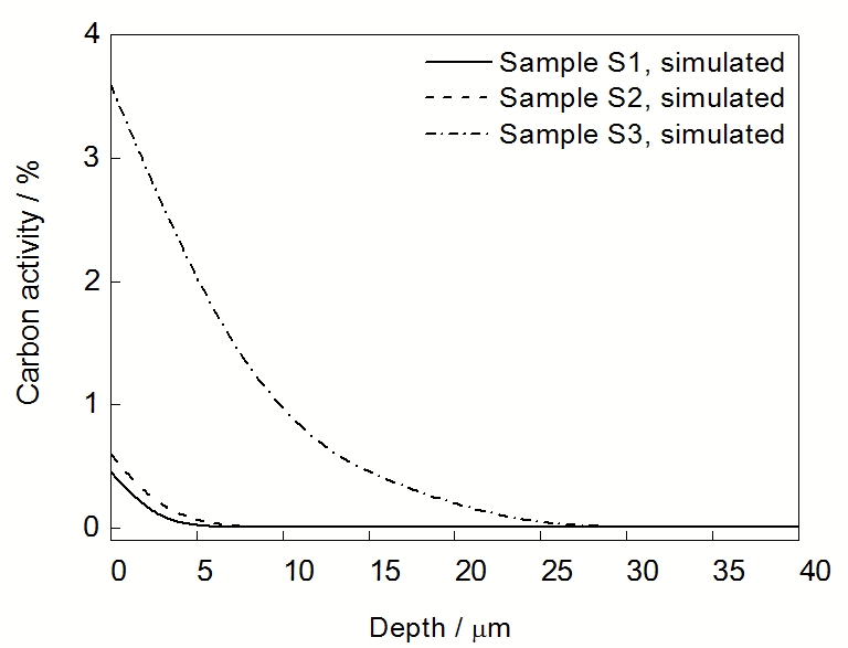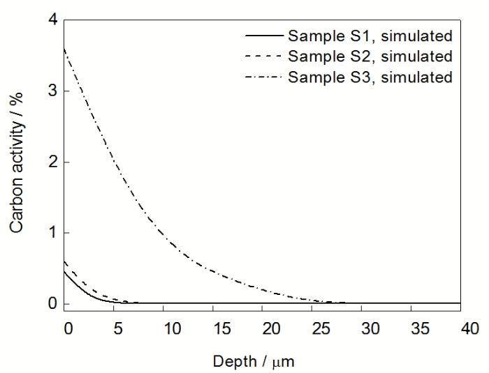 Fig.8   Simulated curves of carbon activity of samples S1, S2 and S3