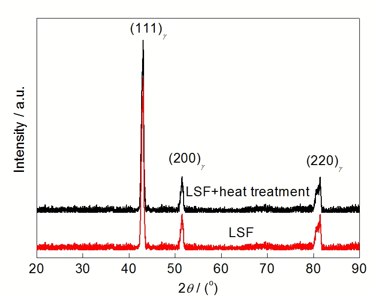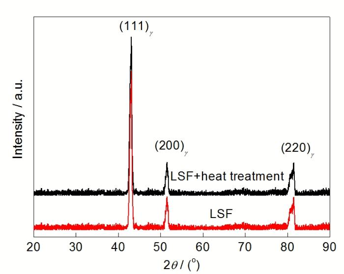 Fig.3 XRD spectra of LSF Inconel 718 alloy before and after heat treatment