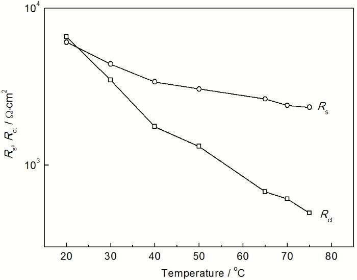 图4 电化学阻抗谱参数Rs与Rct随温度的变化