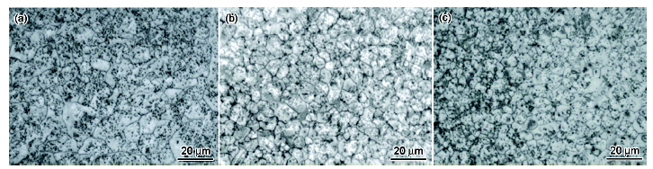 Fig.1 OM images of austenite grain of studied steel quenched by 1 time (a), 3 times (b), and 5 times (c)