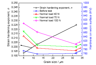 Fig.4 Surface hardness of samples with various grain sizes before and after test