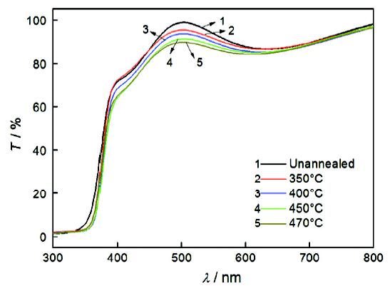 Fig.6 Transmittance of AZO films annealed at different temperatures