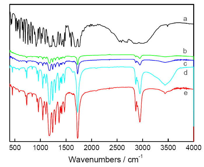 Fig.3 FTIR spectra of pure ASA and PCL/ASA composites prepared with different ASA ratio (a) pure ASA; (b) 15%; (c) 10%; (d) 5%; (e) pure PCL
