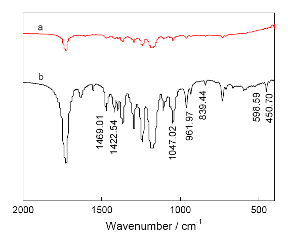 Fig.5 FTIR spectra of PCL/ASA (5%) composite after immersed in 1.5 SBF for (a) 0 d and (b) 7 d