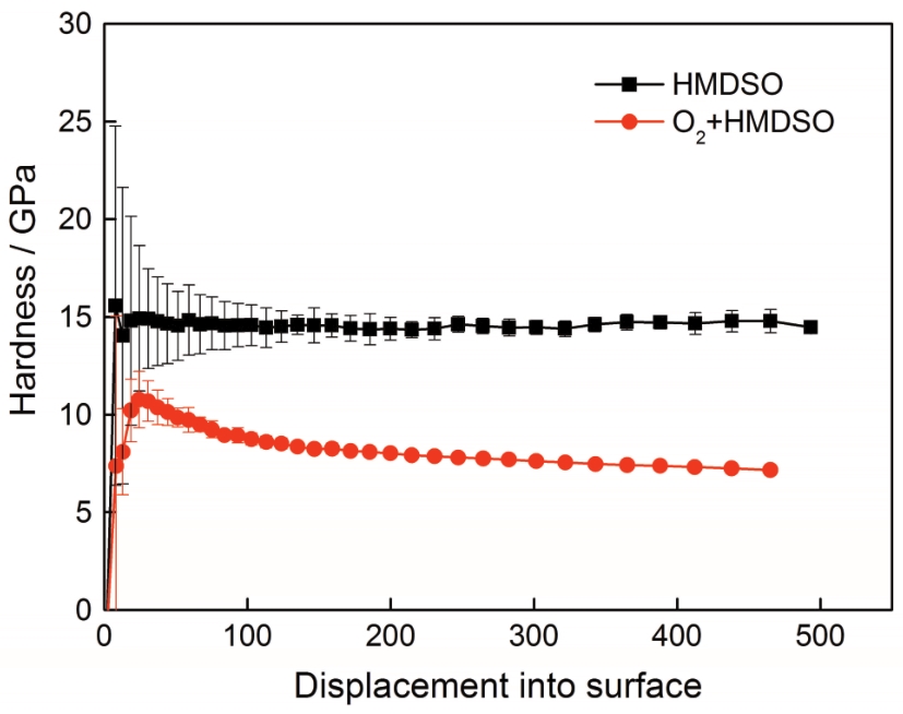 | Fig.17 Nanoindentation test results of cathode films at different gas sources |