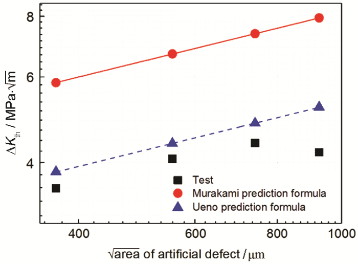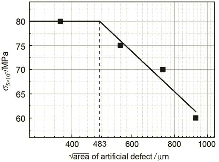 当试样的疲劳失效由材料缺陷引起时,缺陷尺寸对疲劳强度有较大的影响。为了量化缺陷尺寸对疲劳强度的影响,Murakami教授提出根据试样缺陷尺寸(