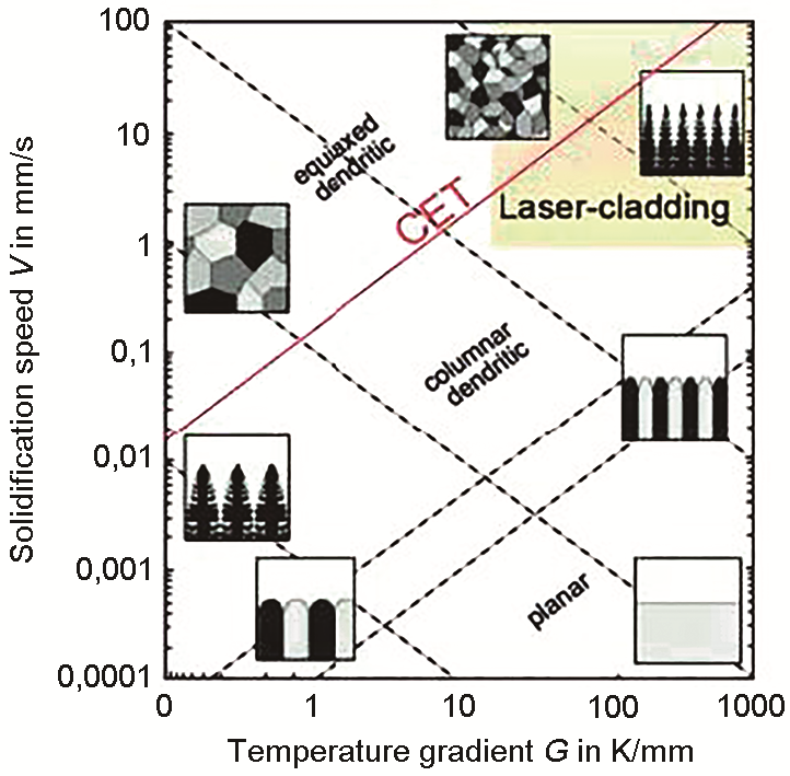 | 图14 不同温度梯度与凝固速率下的凝固组织[ |