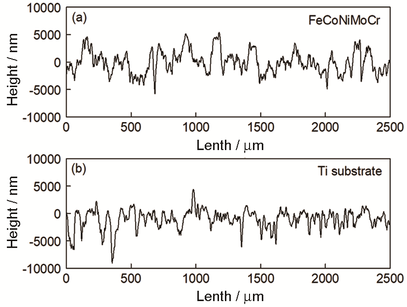 | Fig.3 Profile curve of the high-entropy thin film electrode (a) and the substrate (b) |