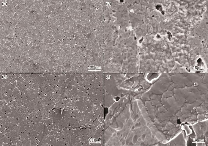SEM of matrix structure of stainless steel 410L (a, b) and 430L (c, d)