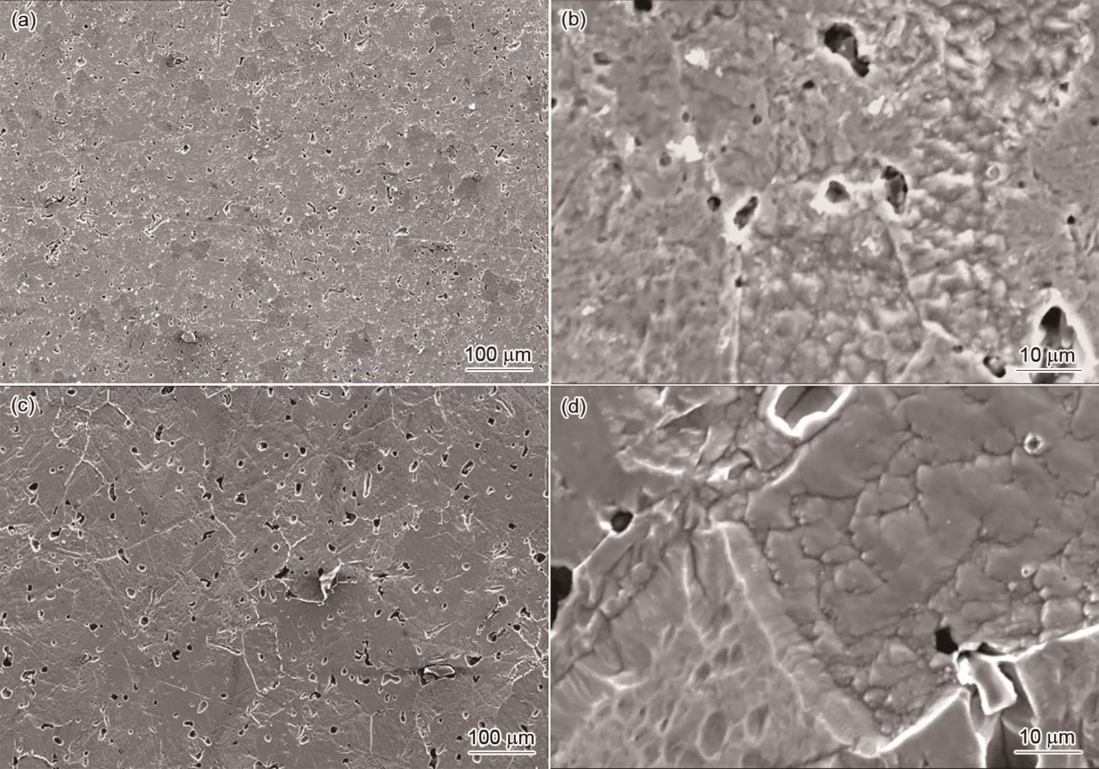 | Fig.2 SEM of matrix structure of stainless steel 410L (a, b) and 430L (c, d) |