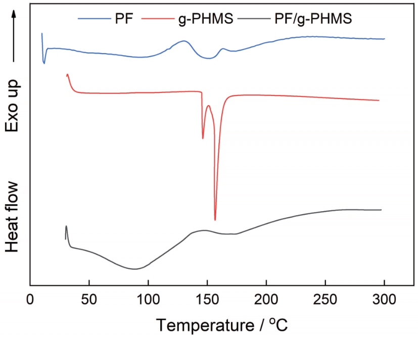 图4 PF、g-PHMS以及PF/g-PHMS的DSC谱 |