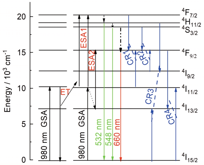 Fig.5 Energy level diagram of up converted luminescent of Er3+ |