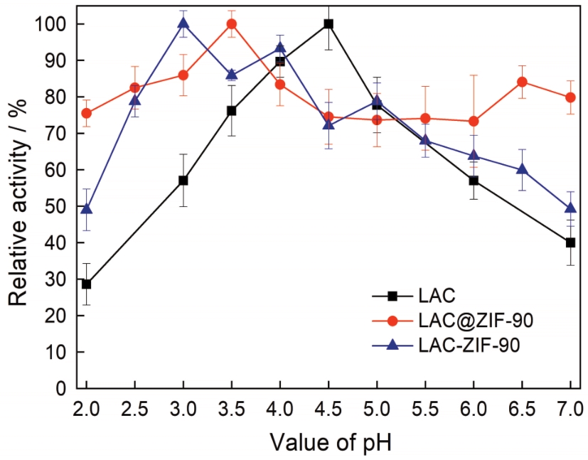 Fig.7 Effect of pH on the activity of immobilized laccase |