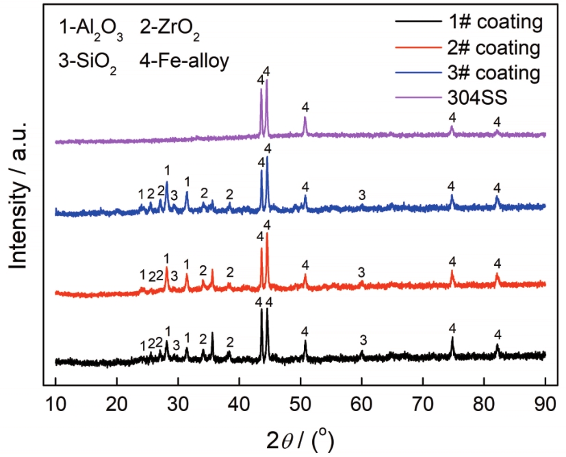 | Fig.2 XRD patterns of 304SS, 1#, 2#, and 3# coating after oxidation for 1000 h at 600℃ |
