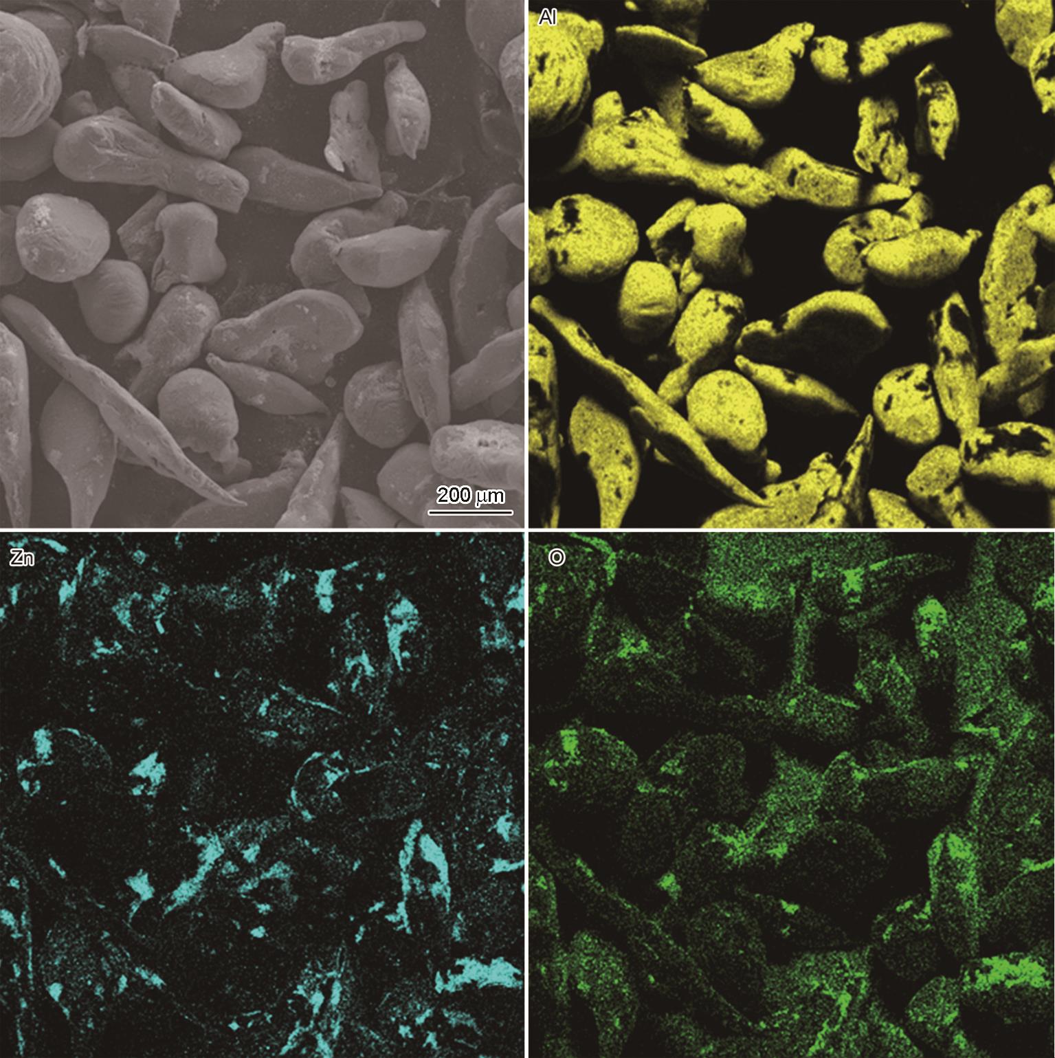 | 图1 球磨后Al-ZnO混合粉末的面扫能谱 |