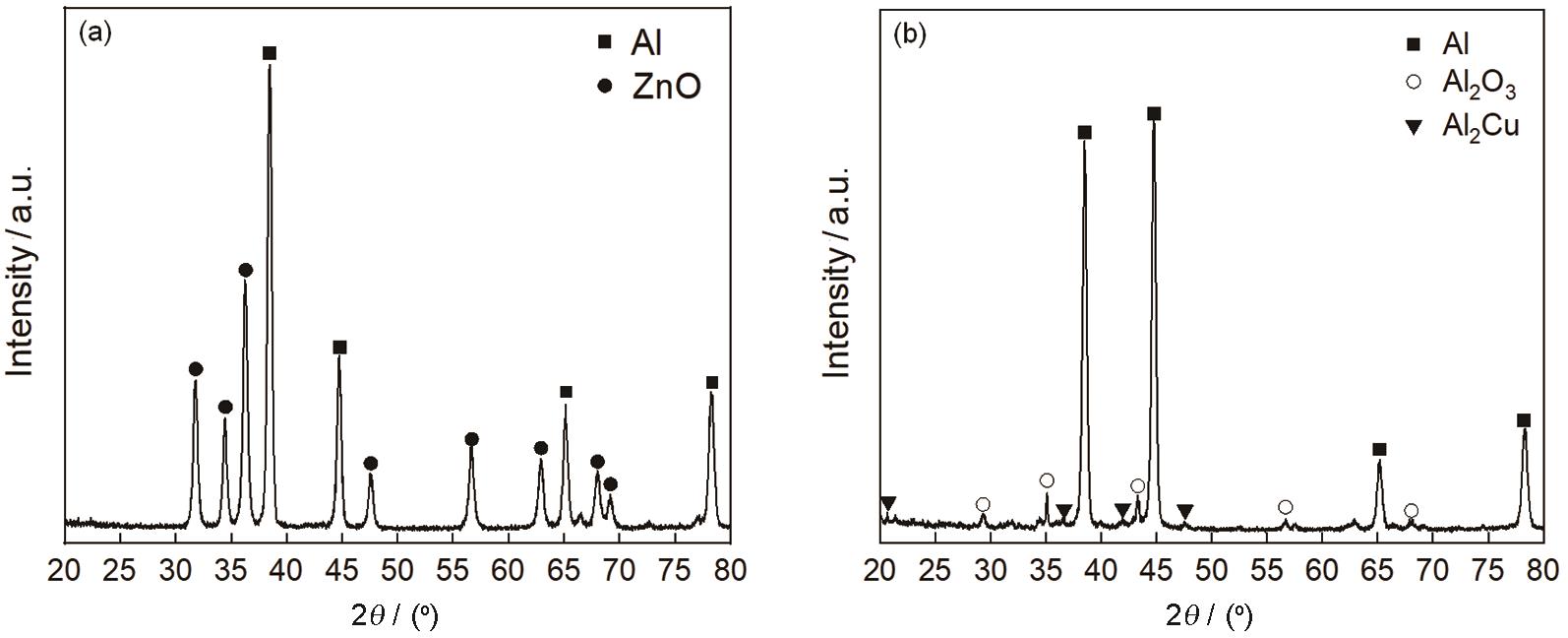 | Fig.2 XRD patterns of Al-ZnO powder (a) and composite materials (b) |