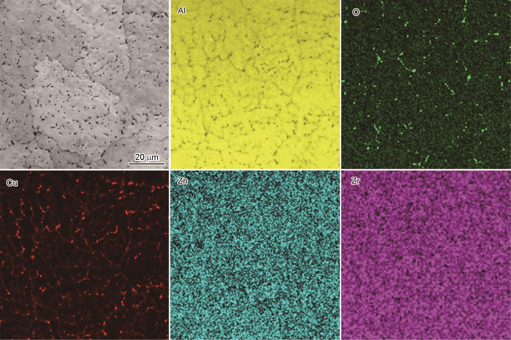 | Fig.5 EDS mapping of Al2O3/Al-Zn-Cu composite after rolling + heat treatment |