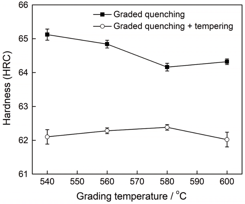 图14 真空分级淬火与回火后8Cr4Mo4V钢的硬度 |