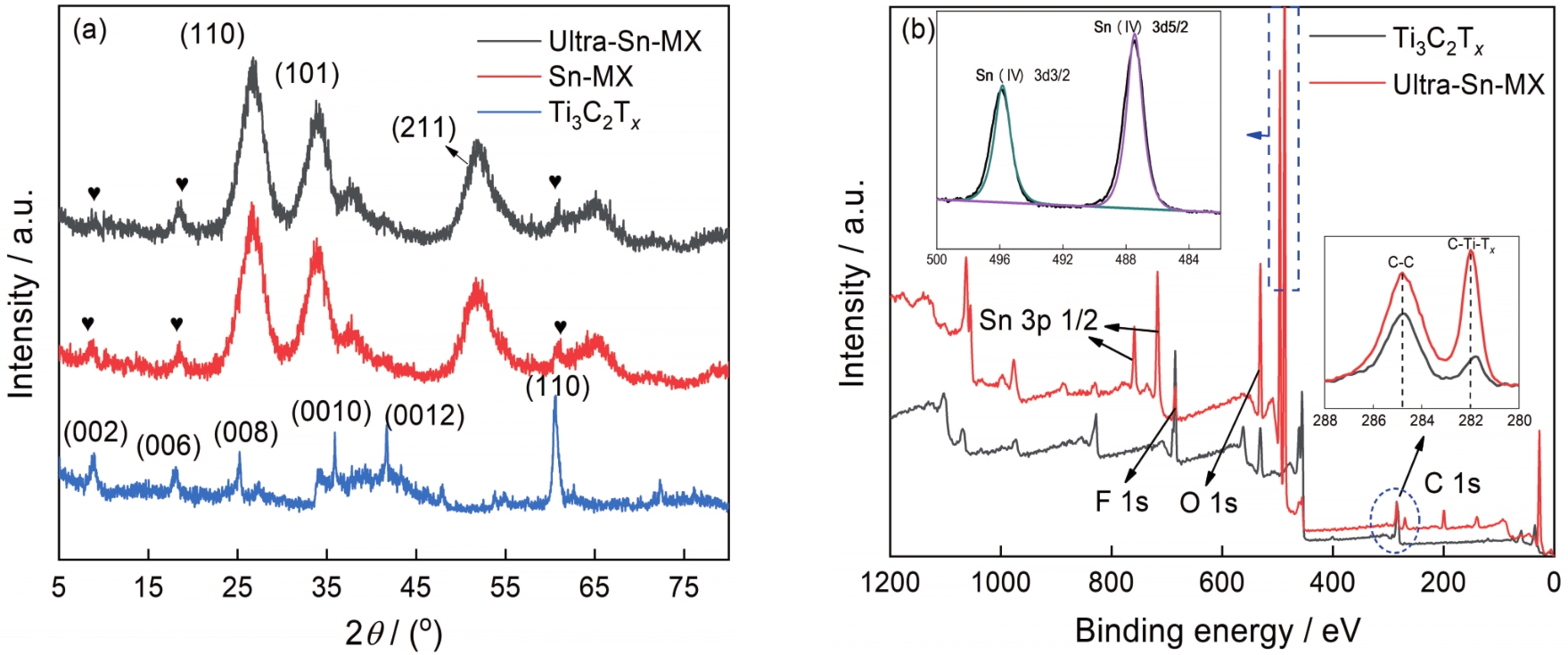 Fig.3 Composition analysis of samples (a) XRD patterns; (b) XPS patterns of ultra-Sn-MX |