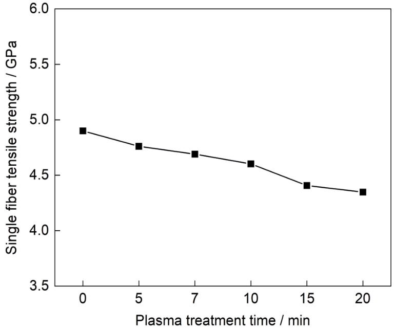 | Fig.5 Single fiber tensile strength of carbon fiber treated for different time by argon plasma |