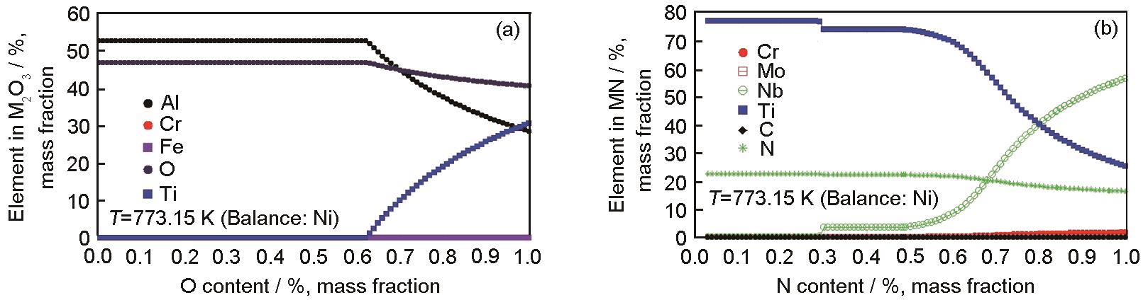 | Fig.8 JMatPro simulates and calculates the changes of various elements in inclusions (a) M2O3, (b) MN |