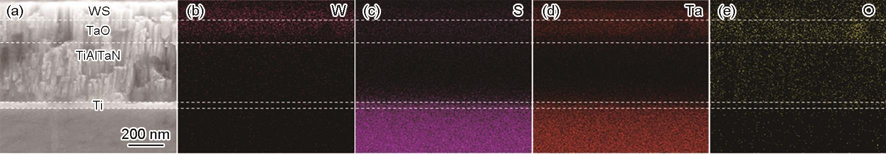| 图3 TiAlTaN/TaO/WS复合涂层截面的SEM照片和相应的EDS面扫描图 |