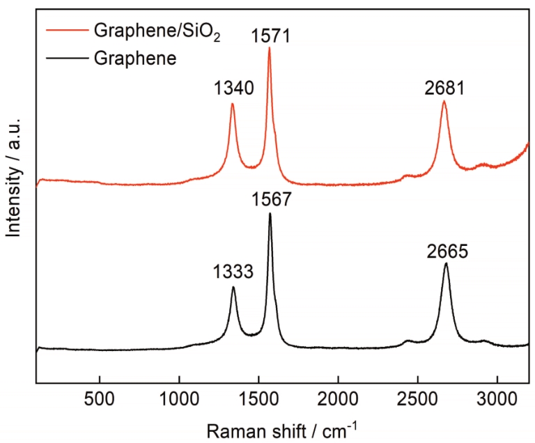 | 图3 Graphene/SiO2和Graphene的Raman谱 |