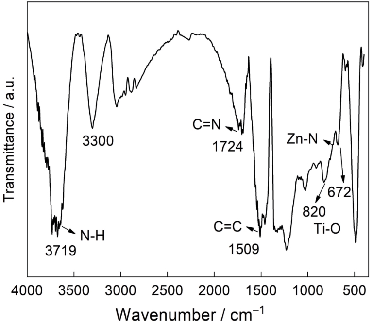 | Fig.3 FT-IR profiles of the ZnOEP/MXene films |