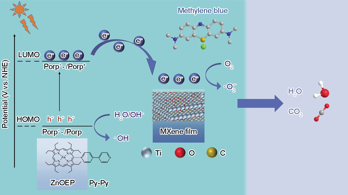 图10 聚卟啉/MXene复合薄膜对亚甲基蓝的光催化降解机理 |