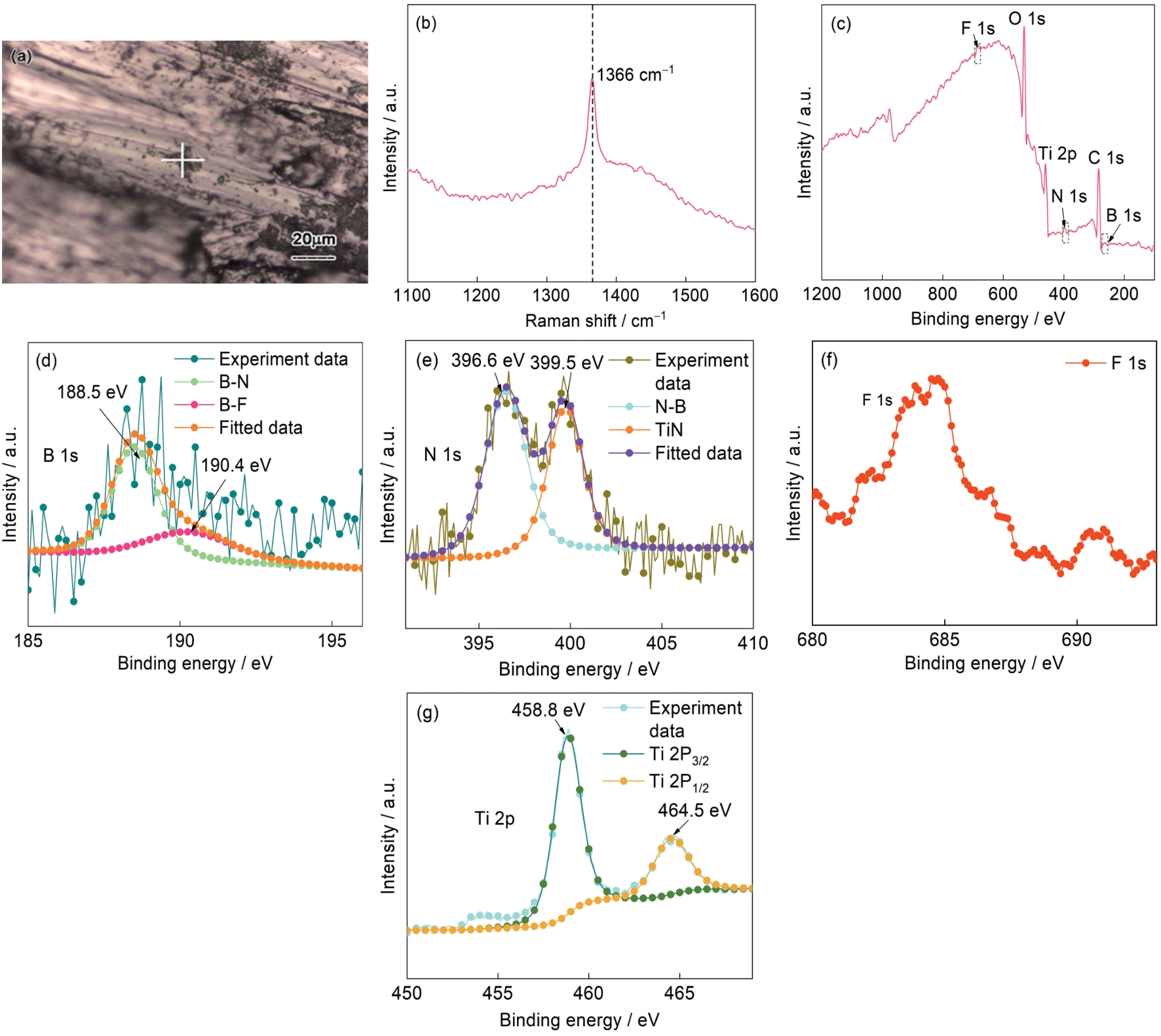 | Fig.12 Raman spectra and XPS spectra of wear surface of 1 mg/mL F-BNNSs12 water-based lubrication |