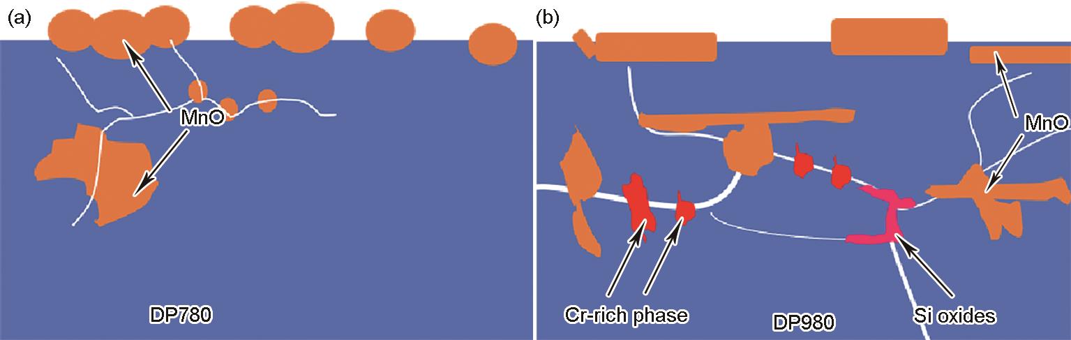 | 图6 热镀锌DP780、DP980双相钢的氧化物分布结构示意图 |