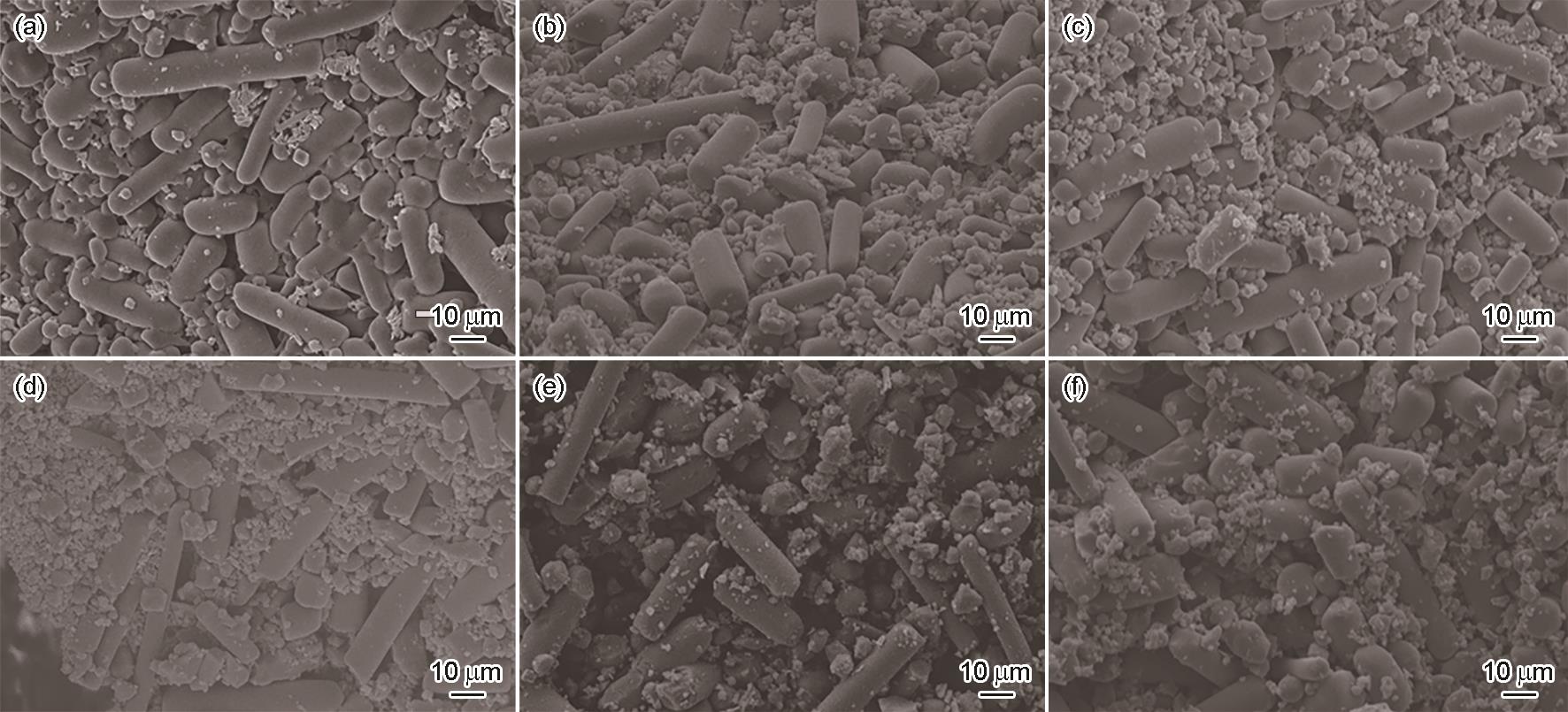 | Fig.11 Microstructure of composites with different gadolinium oxide contents (a) 1%, (b) 2%, (c)3%, (d) 4%, (d) 5%, (e) 6% |