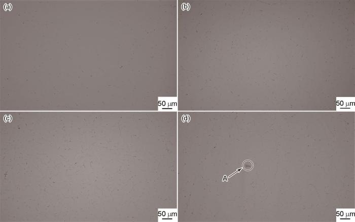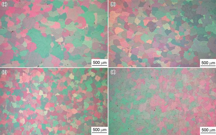 Polarizing structure of Al-Zn alloys with different rare earth contents (a) 0%, (b) 0.2%, (c) 0.5%, (d) 0.75%