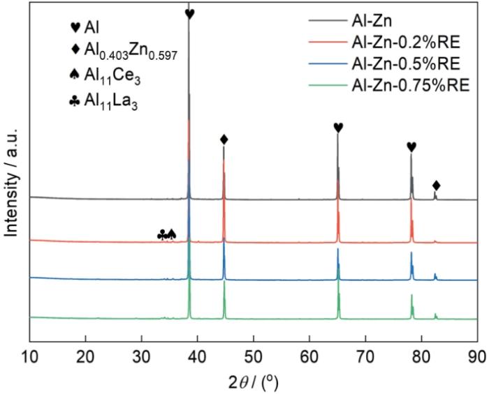 XRD spectrum of Al-Zn alloys with different rare earth contents