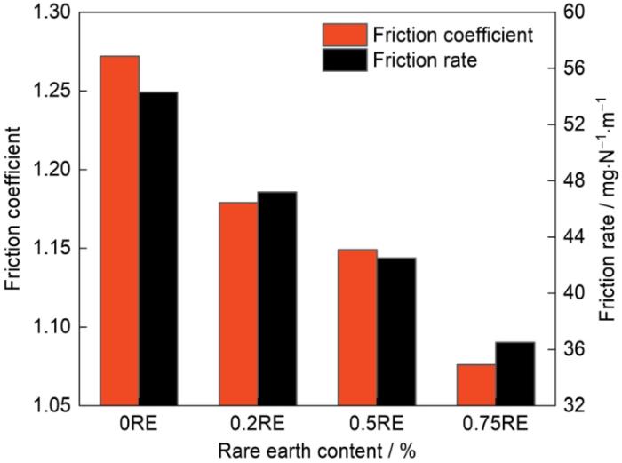 Average coefficient of friction and wear rate of Al-Zn alloys with different rare earth contents