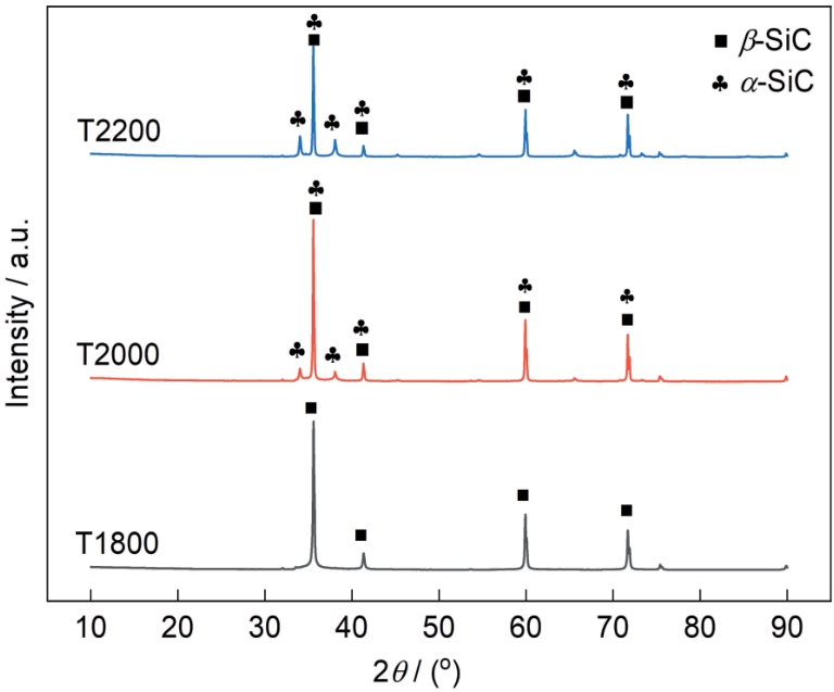 | 图3 不同反应烧结温度的SiC试样的XRD谱 |