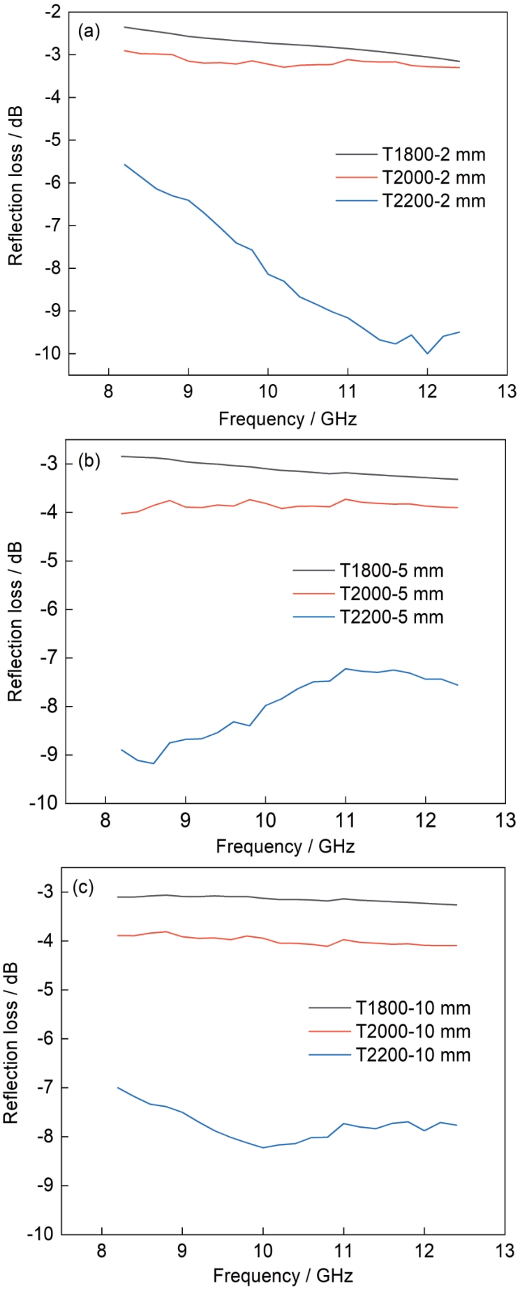 | Fig.10 Reflectivity of T1800, T2000, T2200 specimens of different thicknesses |