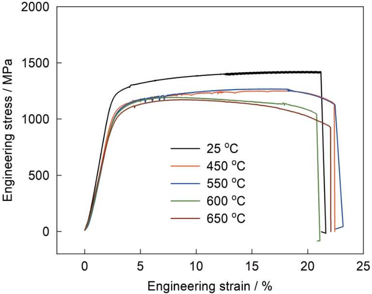 | 图5 SLM GH4169合金在不同温度的工程应力-应变曲线 |