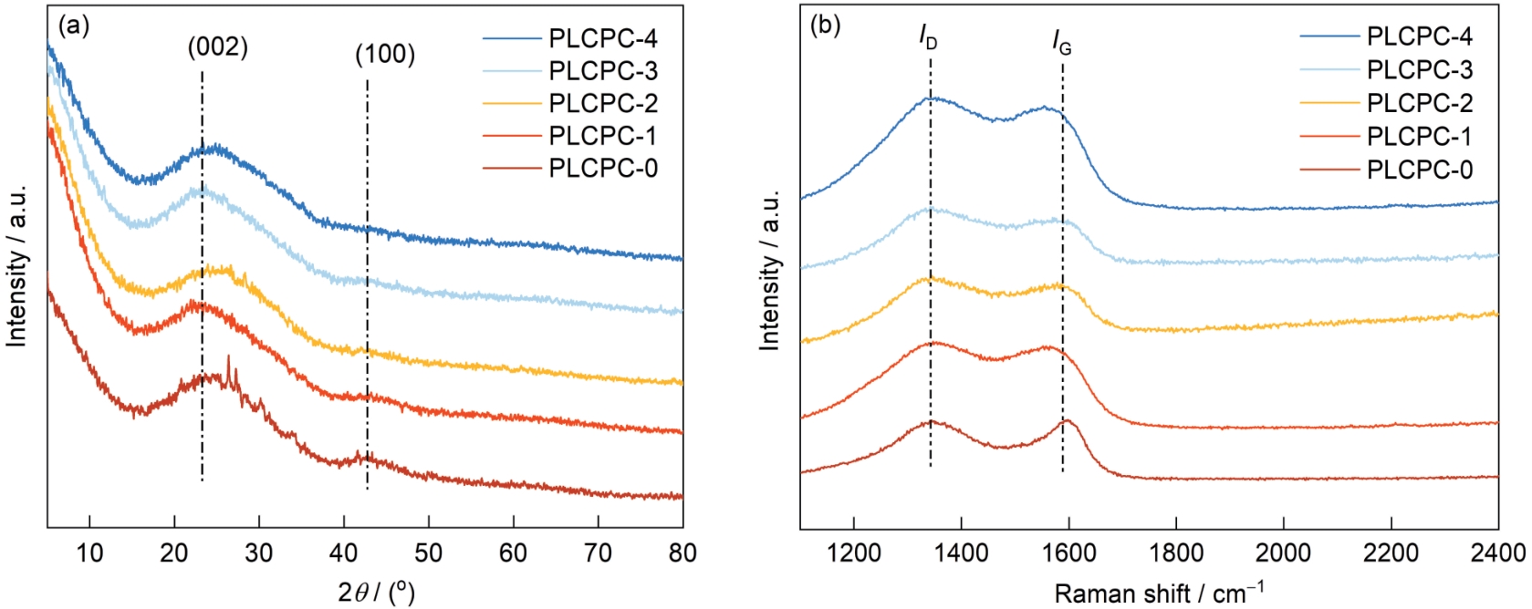 | Fig.5 XRD patterns (a) and Raman spectra (b) of PLCPC-x |