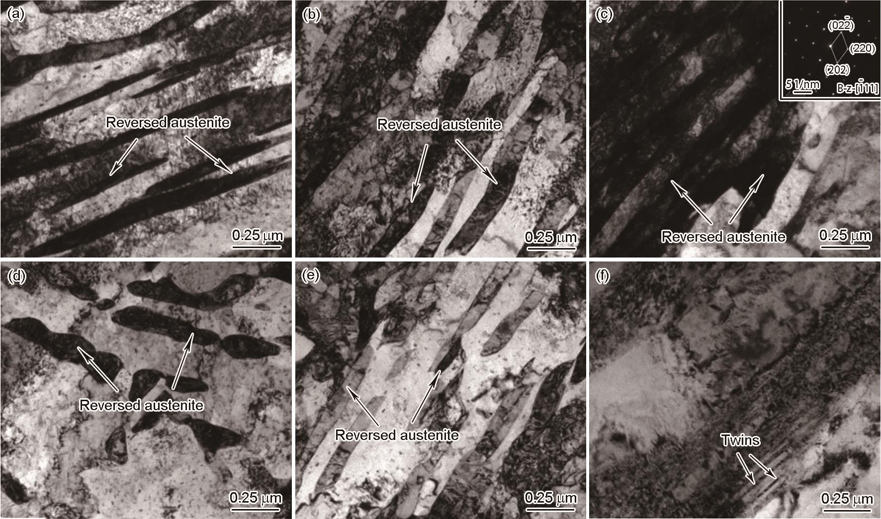 | 图4 在不同温度回火的4Mn钢的TEM照片 |