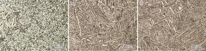 Metallographic microstructure of Ti-6Al-4V alloy (a) wrought Ti-6Al-4V alloy, (b) HIP-X Ti-6Al-4V alloy, (c) HIP-Z Ti-6Al-4V alloy