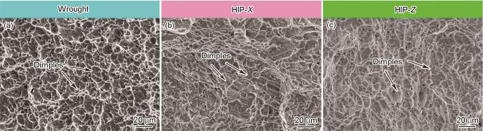 (1) 与传统的锻造件的拉伸强度相比,SLM+HIP技术制备的Ti-6Al-4V合金在X向和Z向的拉伸强度更高。两者的延伸率都比较高(超过15%),表明其延展特性优异。