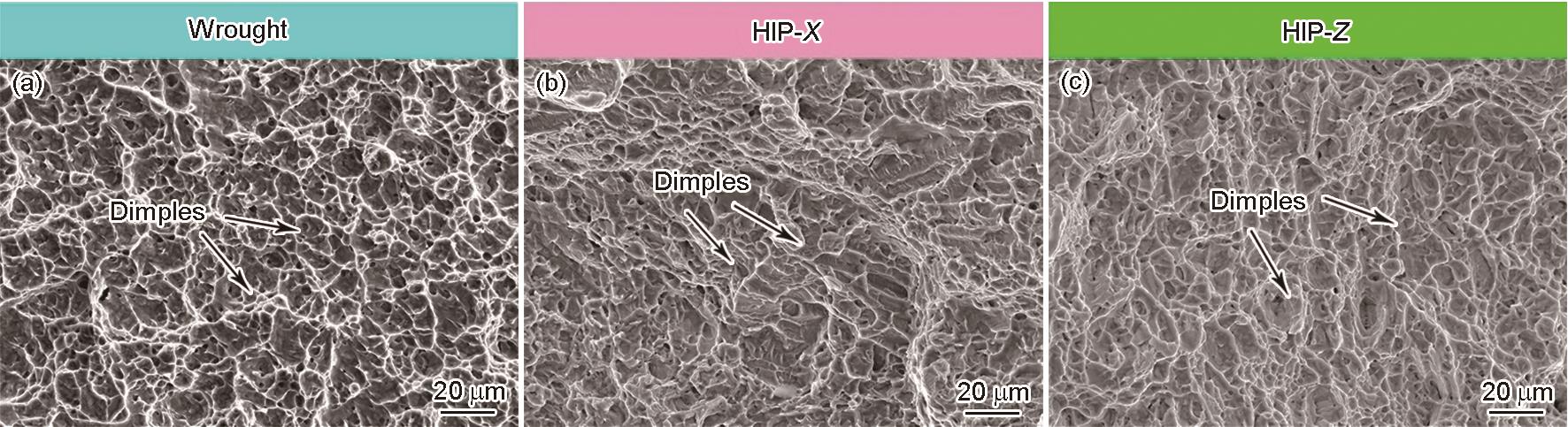 | 图8 不同状态下Ti-6Al-4V合金疲劳瞬断区的微观形貌 |