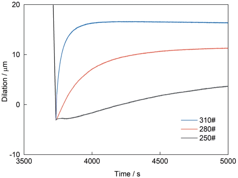 | 图7 不同温度等温淬火后试验钢的膨胀量-时间曲线 |
